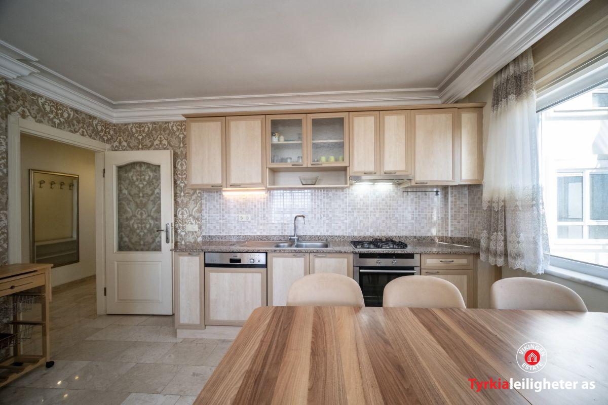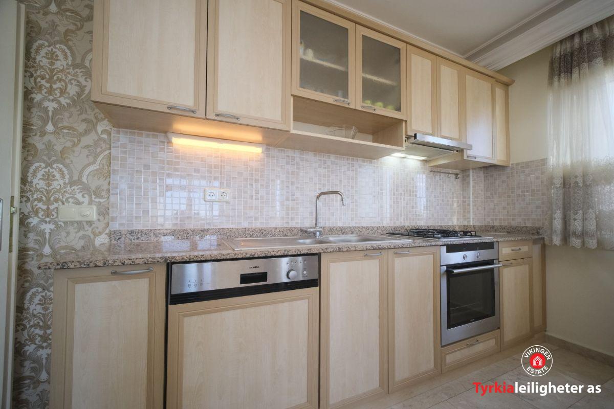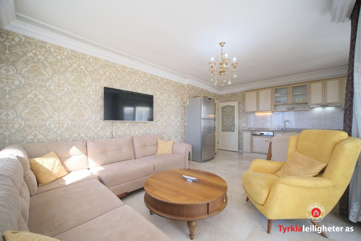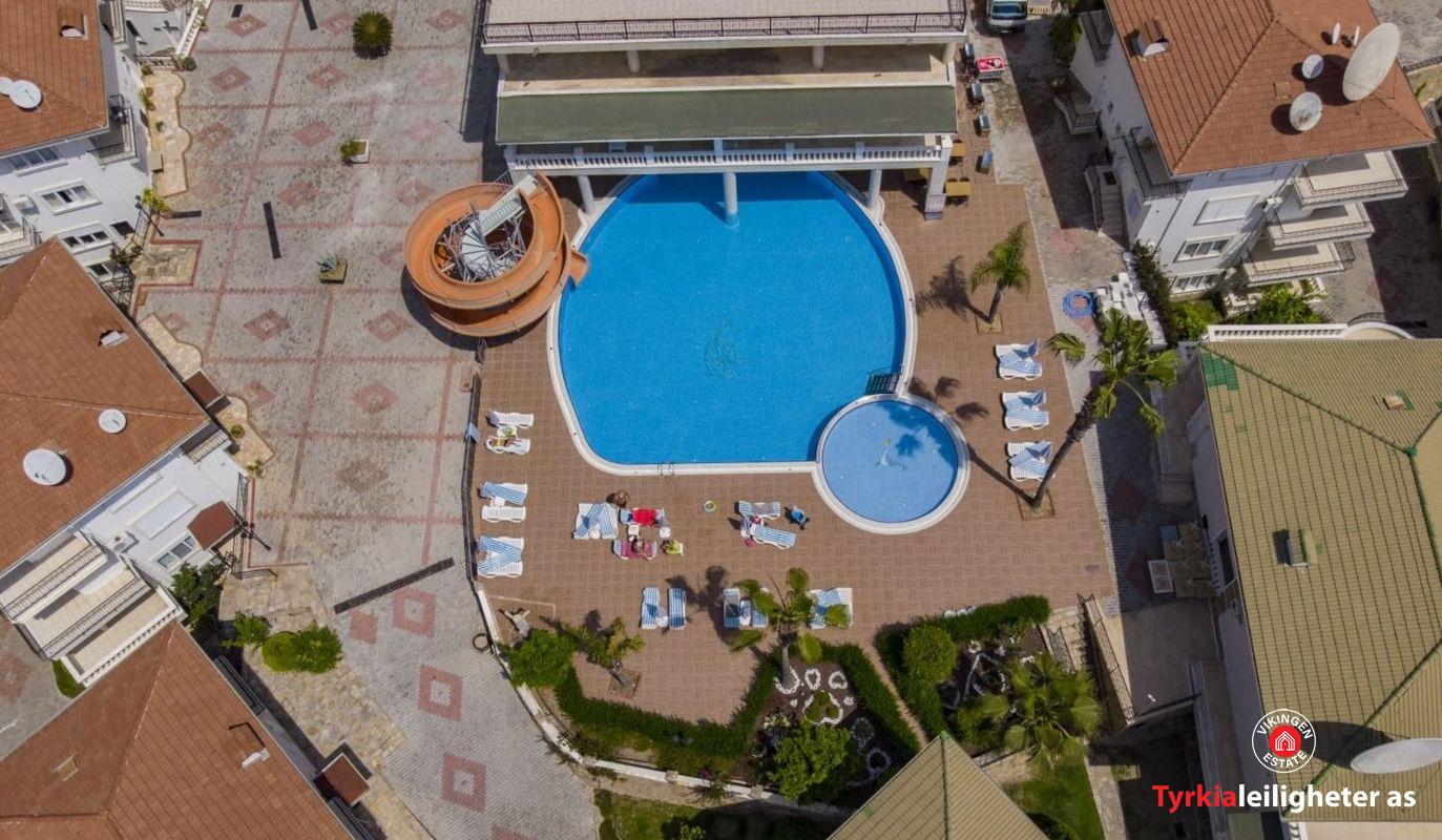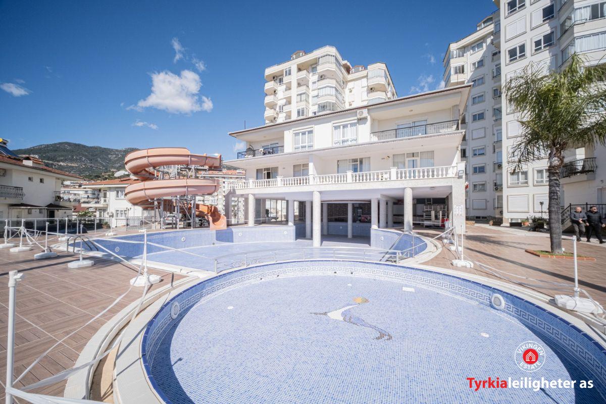 Potpuno namješten i spreman za useljenje. Namještaj, bijela tehnika, klima uređaj, perilica rublja, televizor, balkonski namještaj. Karakteristike kompleksa: Vanjski bazen, unutarnji bazen, vodeni tobogan, tursko kupatilo, sauna, soba za bilijar i stolni tenis, vrt, bar pored bazena, lift, generator.